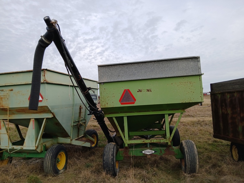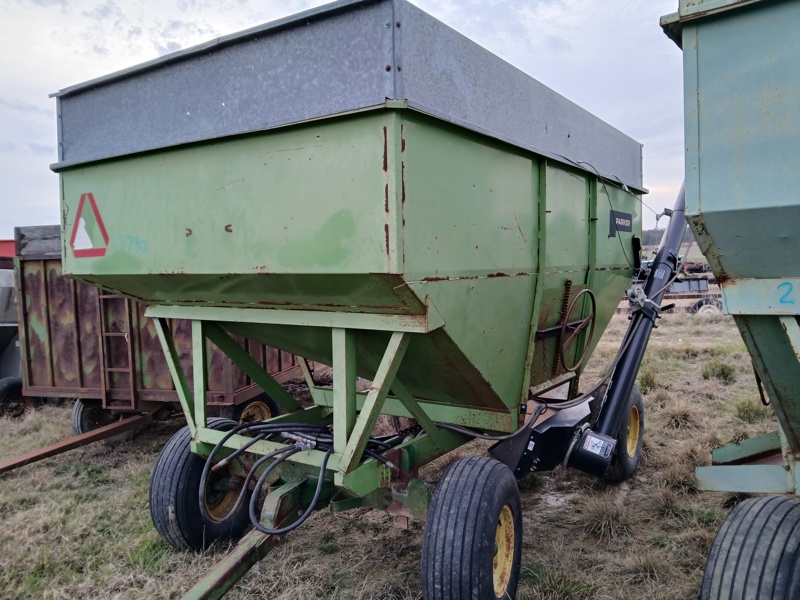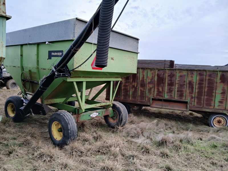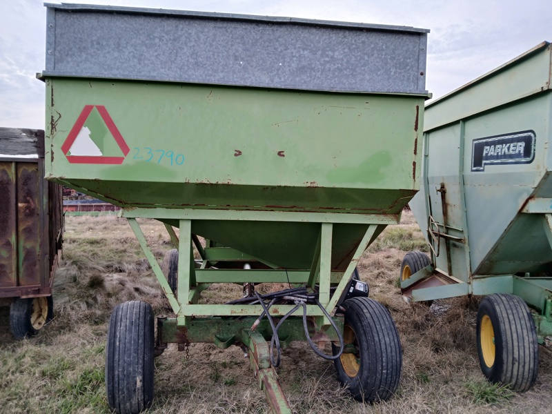 | Description | Gravity flow, pull type, has a 6in auger, hydraulic auger, 12ft long, 7ft wide, 8 lug wheels |