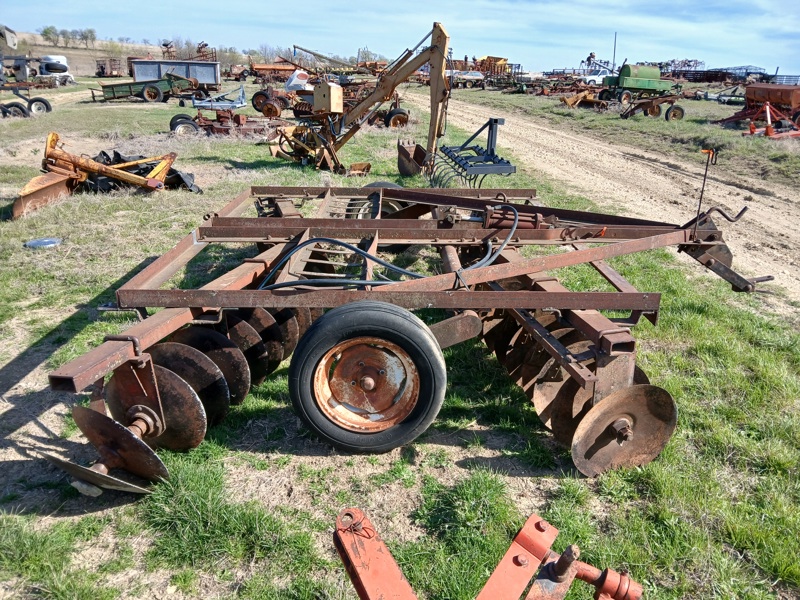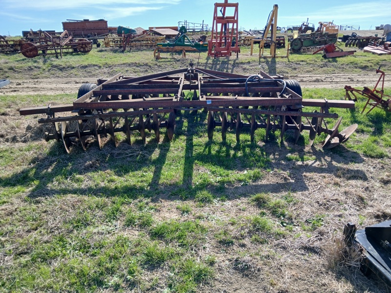 | Description | Disc plow pull type, 12 ft wide, 18" disc's front, 17" disc's back, needs repair |