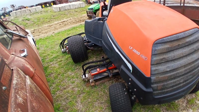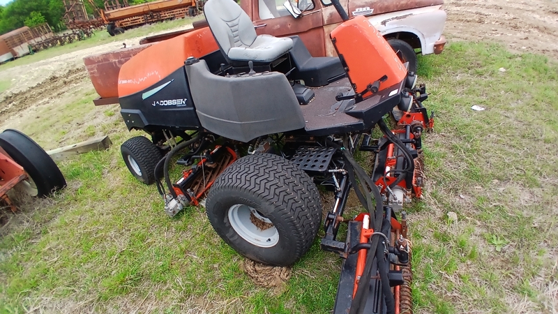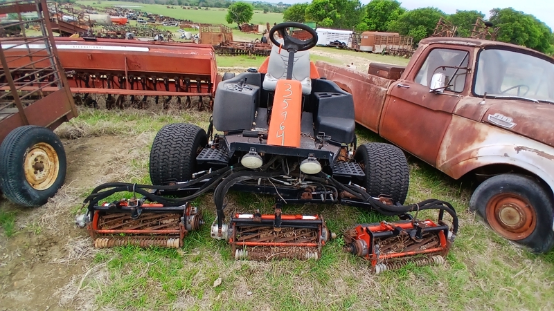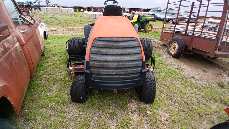 | Description | Salvage Lawn mower, Rear steering, 5 reel mowers, 26.5x11.00-12 tires, 4 wheel drive |